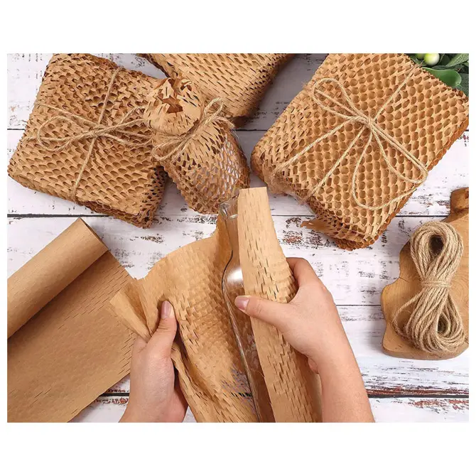 Izrađen od 100% reciklabilnog kraft papira s saćastom (honeycomb) strukturom, ovaj materijal pruža sigurnu zaštitu i elegantan izgled bez potrebe za plastičnim folijama ili ljepljivom trakom.