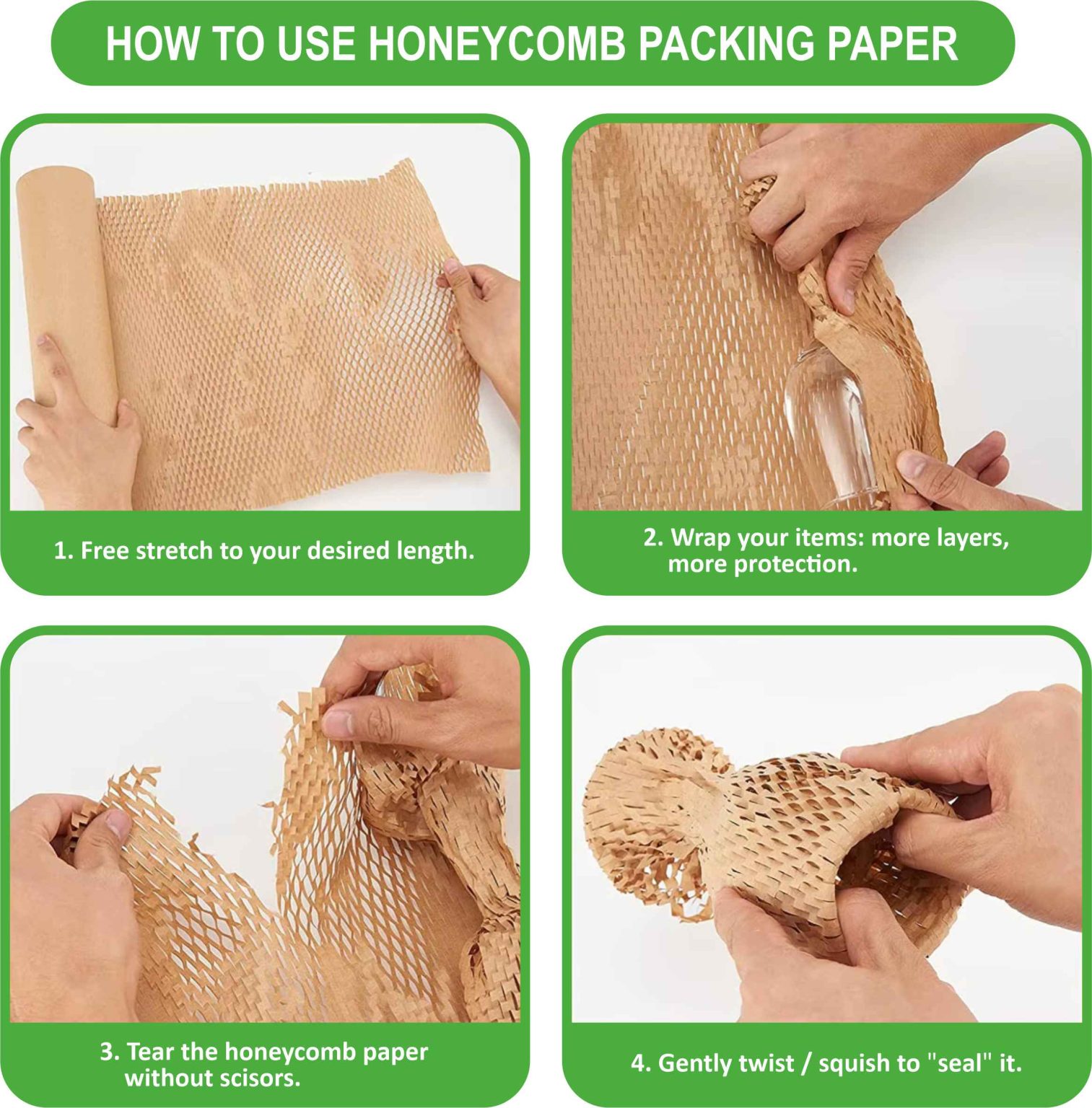 Izrađena od smeđeg kraft papira sa saćastom (honeycomb) strukturom, nudi izvrsnu amortizaciju i zaštitu tijekom transporta – bez potrebe za plastičnim folijama ili mjehurićima.