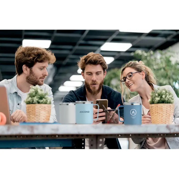 COCOA je moderna termos šalica s dvostrukim zidom, idealna za vruće i hladne napitke. Izrađena je od 90% recikliranog nehrđajućeg čelika i 10% nehrđajućeg čelika unutrašnjosti, uz reciklirani PP vanjski dio. Dolazi s prozirnim AS poklopcem na klizanje koji omogućuje jednostavno i sigurno ispijanje.