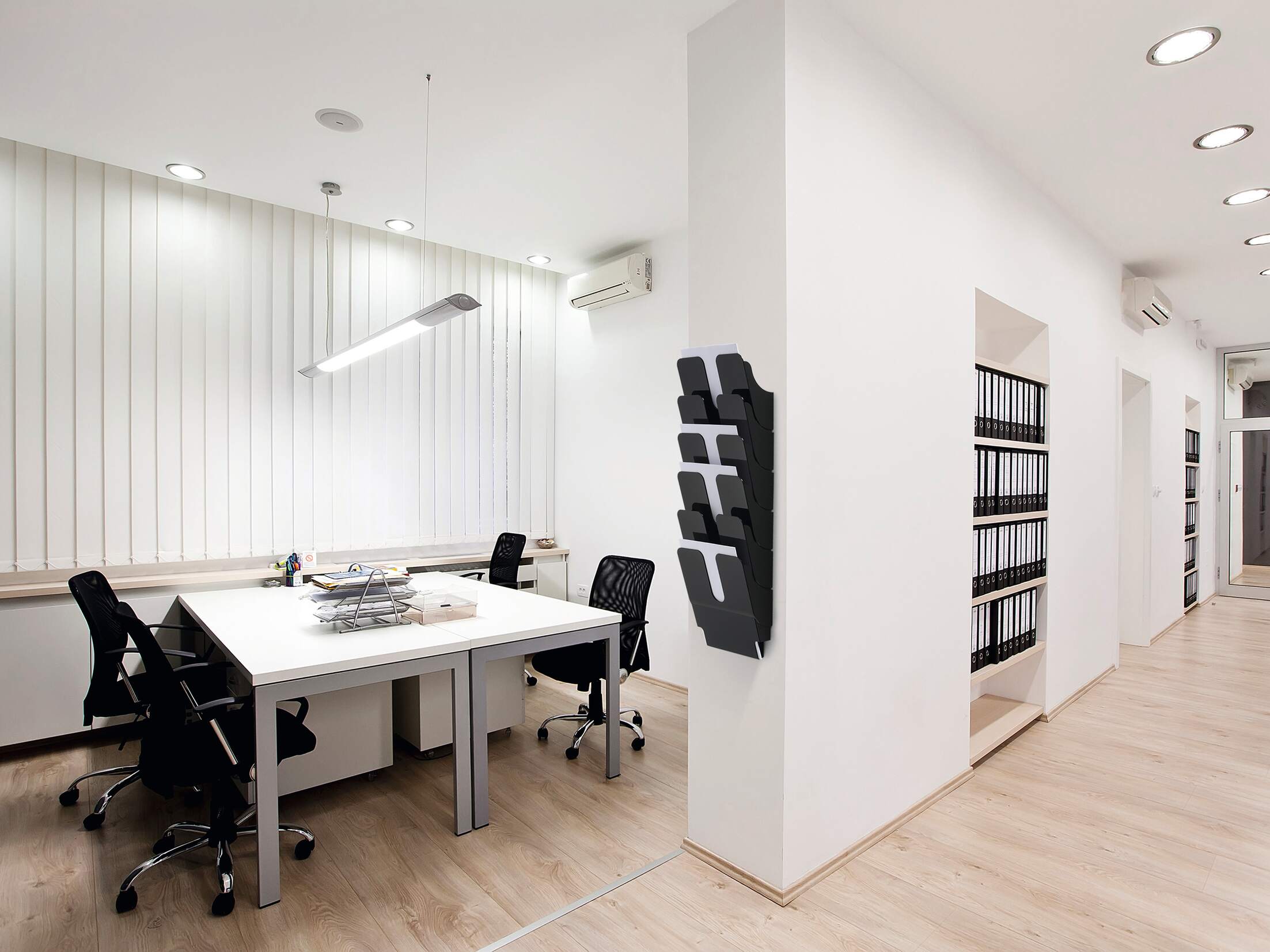 SHERPA višenamjenski zidni stalak s 10 mapa, Jednostavn za montažu na zid i po potrebi na stativu.