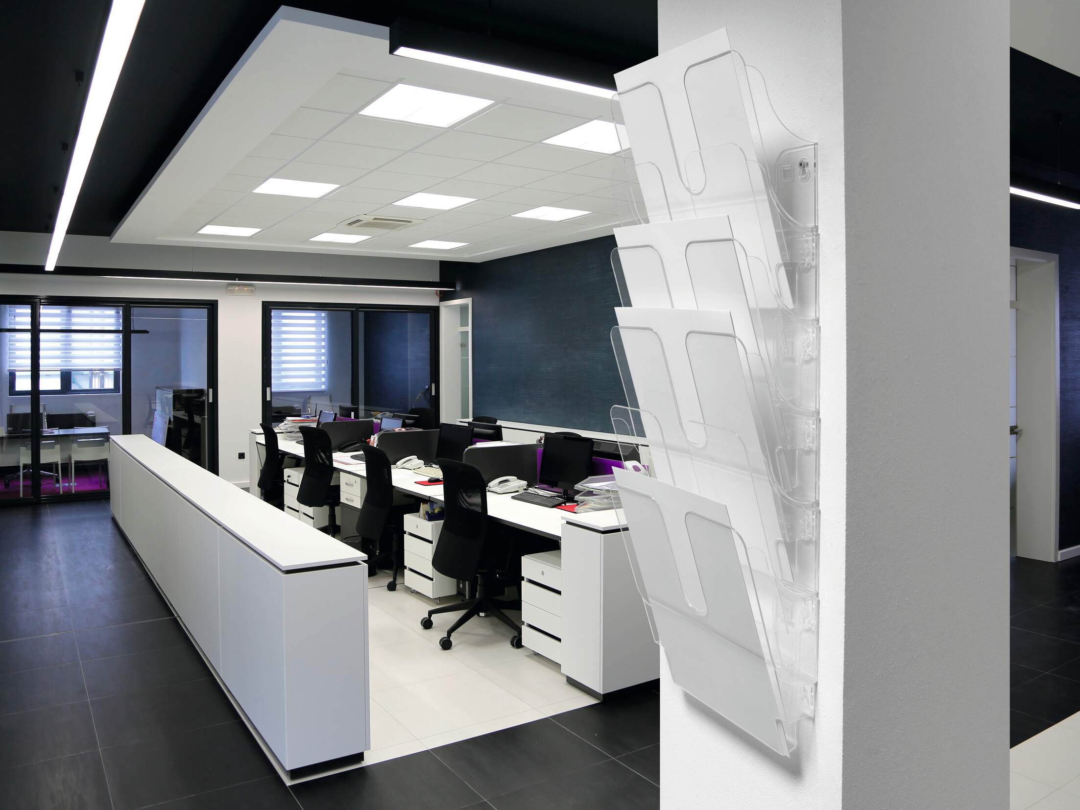 Zidni stalak za prospekte, reklame ili kataloge s 6 odijeljaka zamaterijale A4 portretnog formata. Idealno za informativne ili promotivne materijale na recepcijama, u izložbenim prostorima, čekaonicama ili na sajmovima.