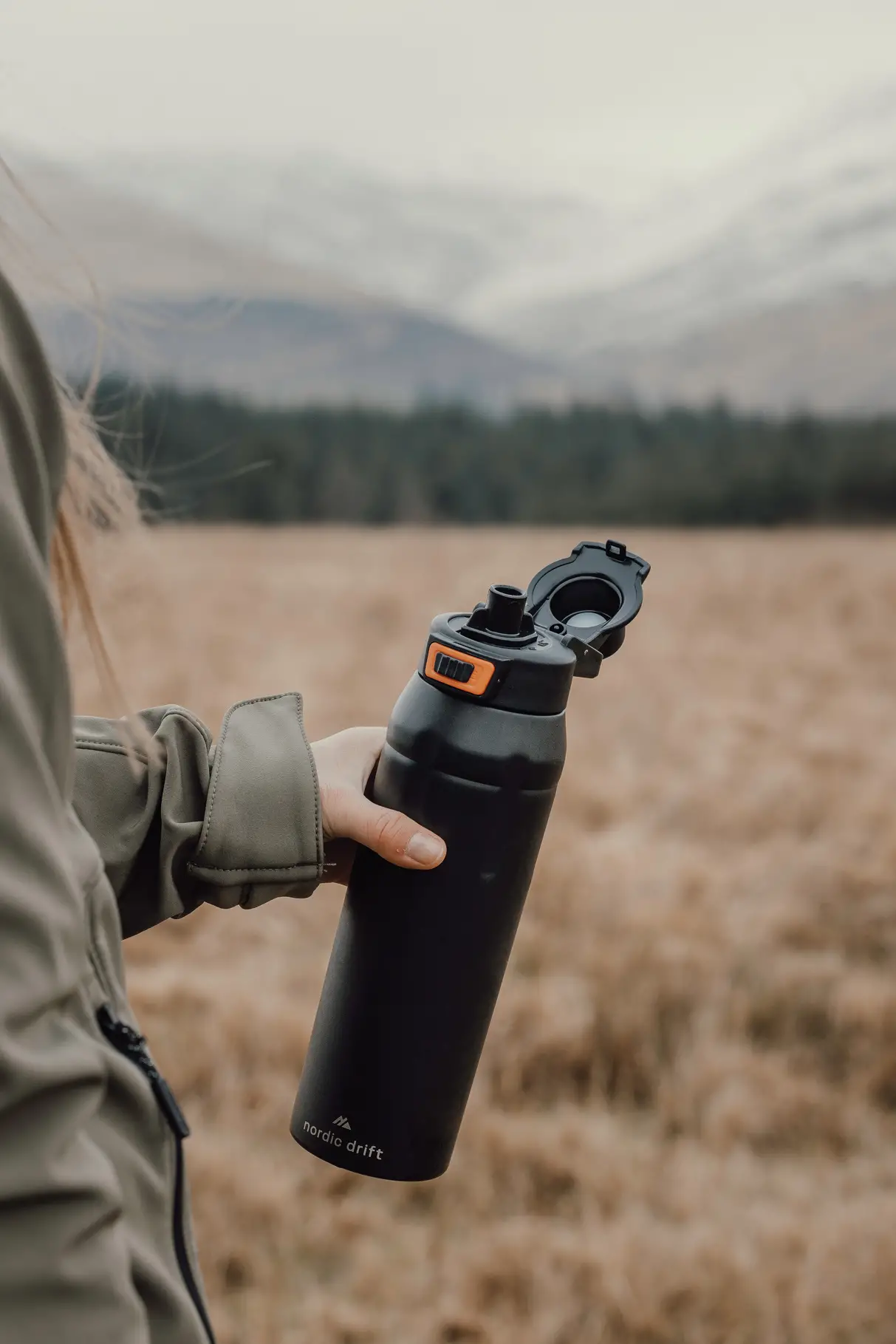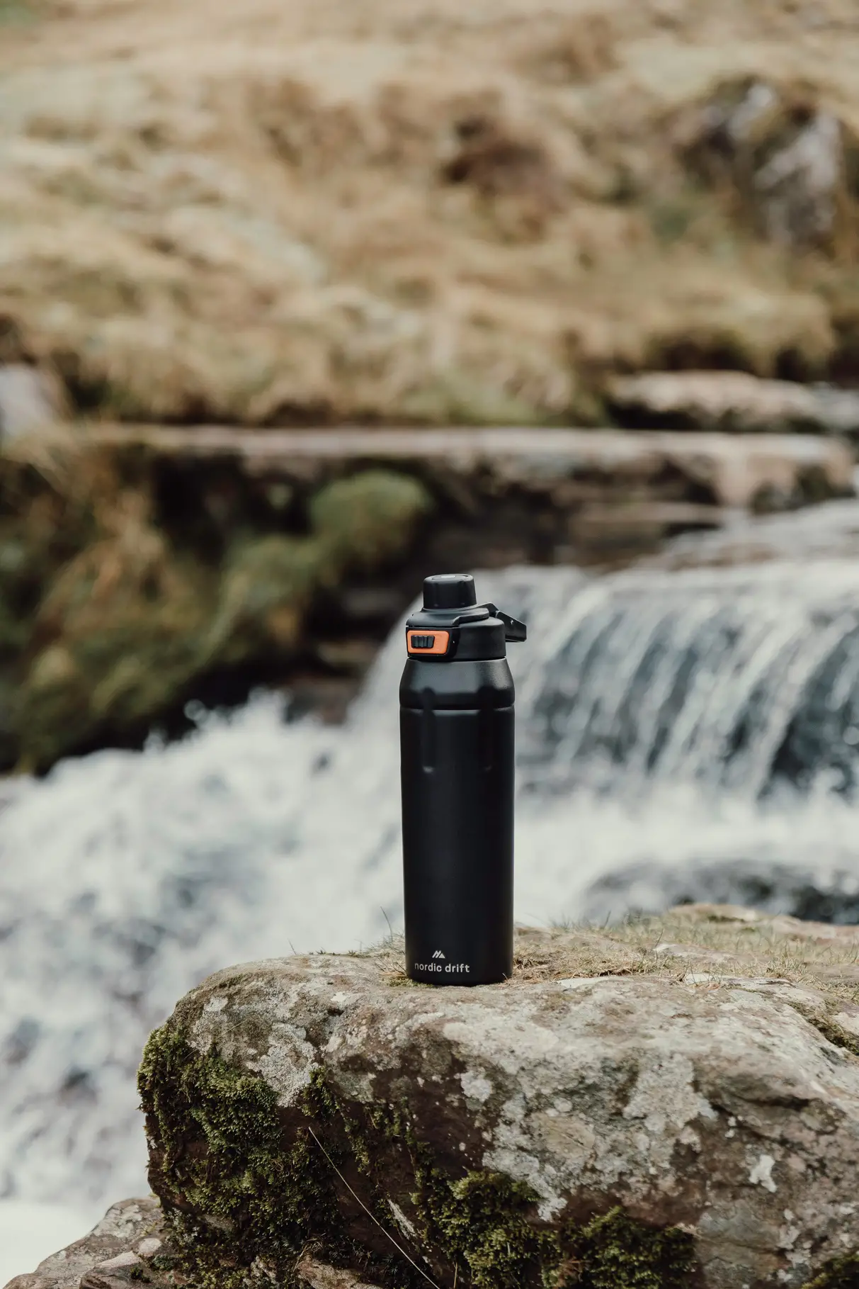 Nordic Drift termo boca izrađena je od 79% certificiranog recikliranog nehrđajućeg čelika (RCS), spajajući održivost i vrhunsku izdržljivost u jednom proizvodu.