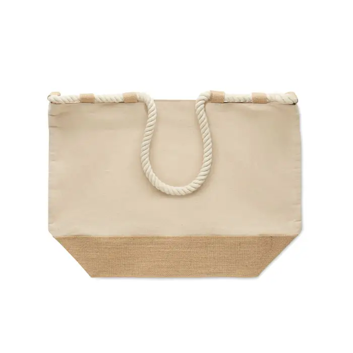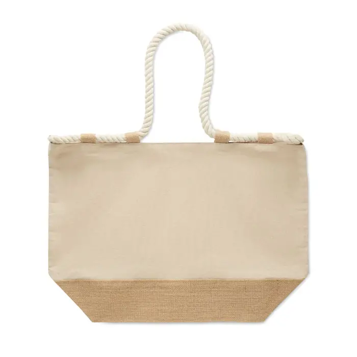 Prostrana i moderna beach torba idealna je za ljetne dane, putovanja i svakodnevnu upotrebu. Kombinacija pamuka i jute daje prirodan, elegantan izgled koji se savršeno uklapa u beach, resort i city stil.