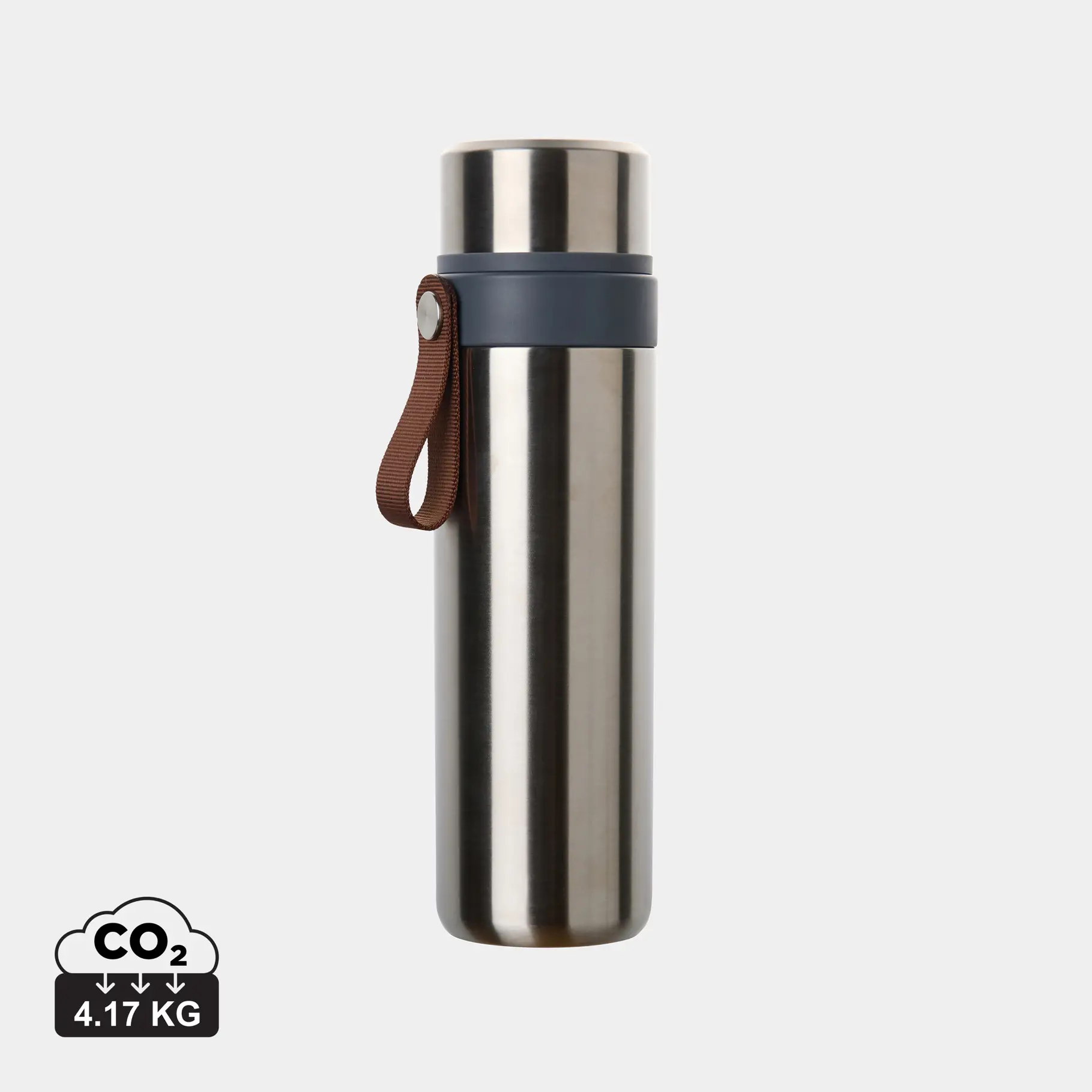 Krenite u avanturu s Tonom. Ova termosica kombinira elegantan dizajn s pametnom funkcionalnošću. S dvostrukom vakuumskom izolacijom, vaša pića ostaju hladna do 12 sati – ili vruća do 6 sati. Praktični poklopac može se podijeliti na dvije šalice, idealno za dijeljenje toplog ili hladnog napitka. Praktična omča za nošenje olakšava nošenje na bilo koje putovanje. Samo ručno pranje. Certificirano od strane RCS-a (Recycled Claim Standard), RCS certifikat jamči da je cijeli lanac opskrbe recikliranim materijalima certificiran. Ukupni sadržaj recikliranih materijala temelji se na ukupnoj težini proizvoda. Ovaj proizvod sadrži 24% recikliranog čelika s RCS certifikatom.