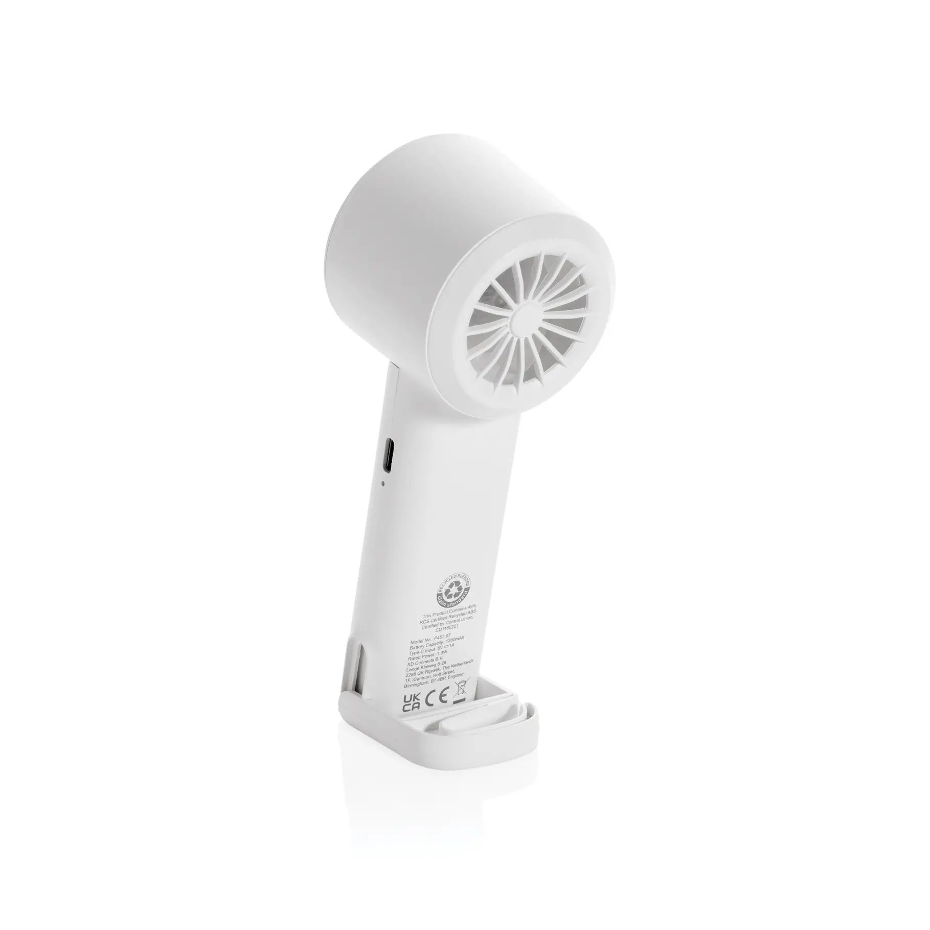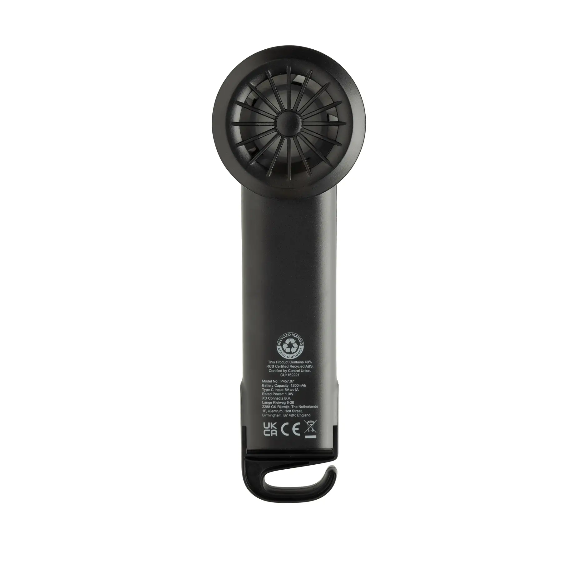 Prijenosni ventilator Twist kompaktan je i praktičan za hlađenje kod kuće ili na putovanju. Izrađen od 35% RCS certificirane reciklirane plastike, nudi do 6 sati rada uz tri razine brzine. Ima punjivu bateriju od 1200 mAh, produživu kuku koja služi i kao postolje te dolazi u FSC pakiranju.