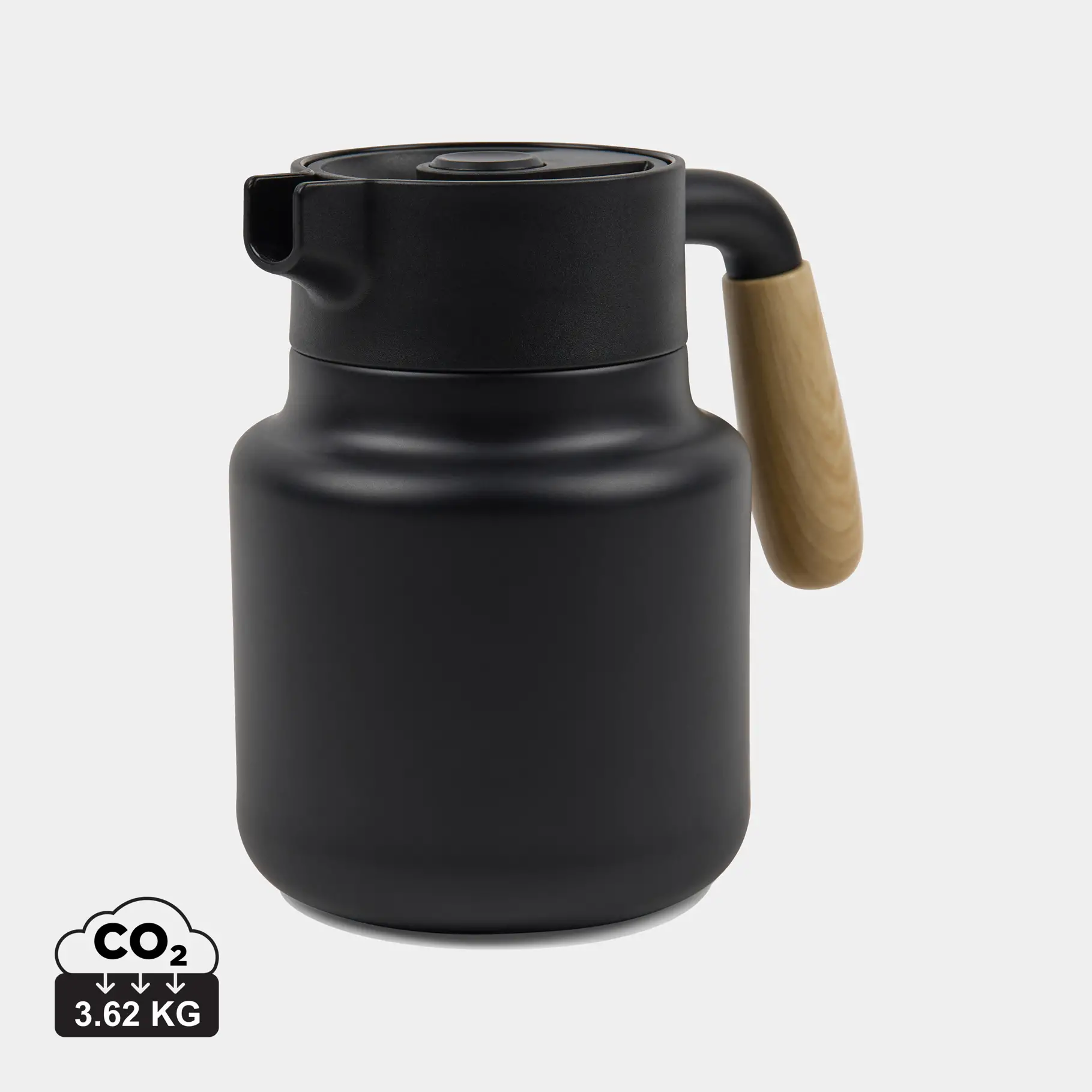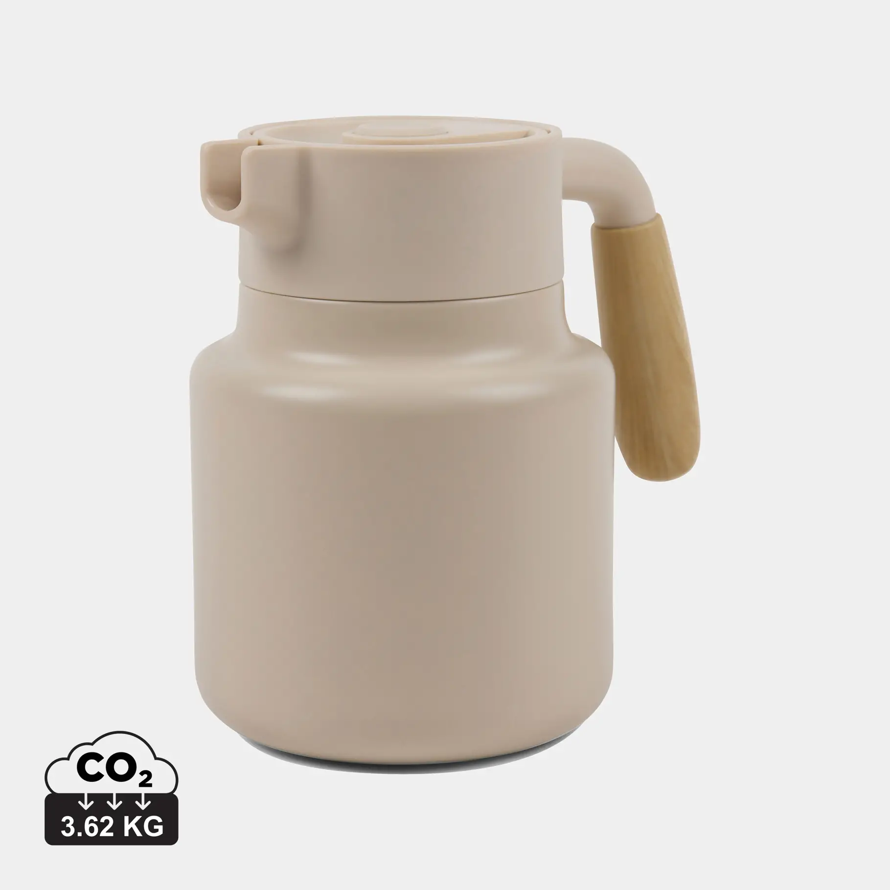 VINGA Arbe RCS vakumski vrč održava vaša pića hladnim 24 sata te toplim 6 sati. Izrađen od recikliranog nehrđajučeg čelika s kapacitetom 1200 ml. Poklopac sadrži praktični gumb s velikim otvorom za jednostavno punjenje i čišćenje. Drška je izrađena od PP-a s izgledom prirodnog drveta. Namijenjen samo za ručno pranje, nije prikladan za mikrovalnu pećnicu.