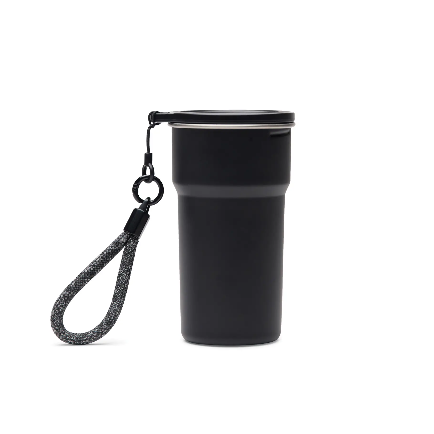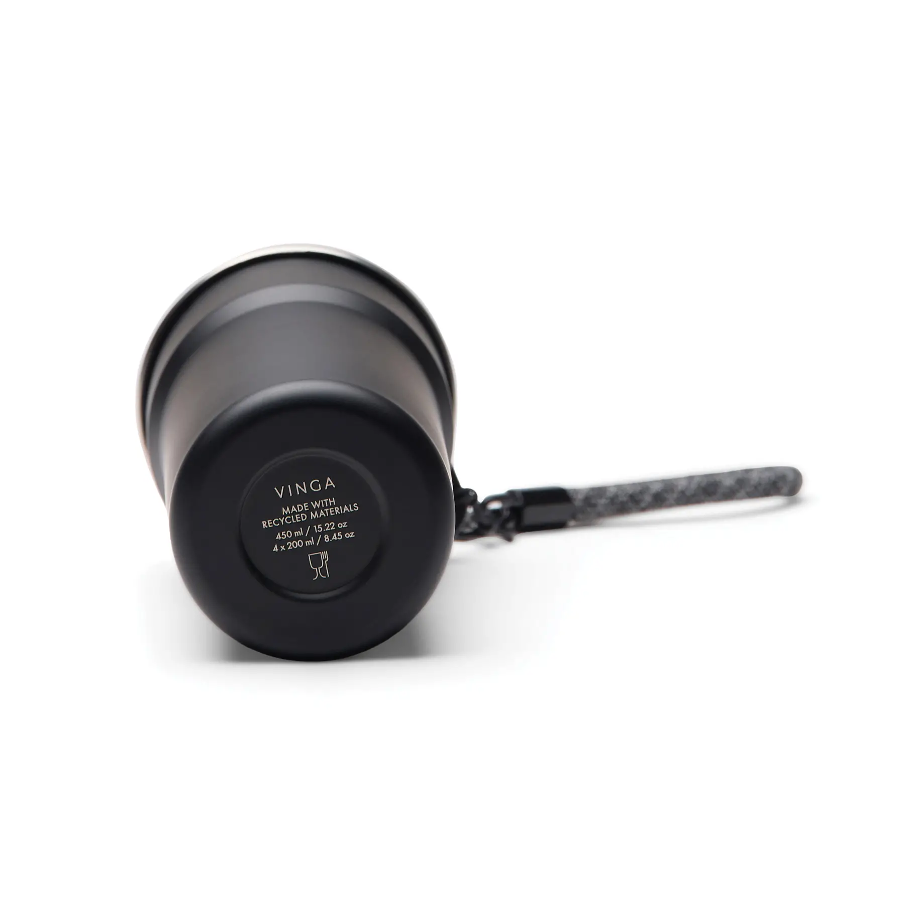 Promotivni set od 4 šalice od recikliranog nehrđajućeg čelika. Četiri šalice od 250 ml nalaze se unutar šalice od 450 ml s vezicom za nošenje, što je čini kompaktnom i jednostavnom za nošenje. Pametno rješenje za zajedničko uživanje u pićima, kamo god vas putovanje odvede. Nije prikladno za pranje u perilici posuđa ili korištenje u mikrovalnoj pećnici.