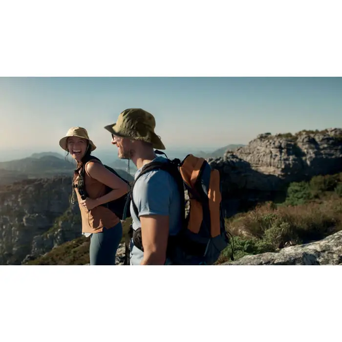 Šešir dolazi s pripadajućom torbicom i karabinerom, što omogućuje jednostavno spremanje i pričvršćivanje na ruksak ili torbu. Kompaktan dizajn čini ga idealnim suputnikom za sve koji su stalno u pokretu.
